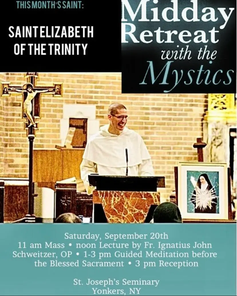 The day will begin at St. Joseph’s Seminary in Yonkers, NY, with Mass at 11:00 AM, followed by a one-hour conference talk by Fr. Ignatius John Schweitzer, OP on St. Elisabeth, before we enter into guided meditation before the Blessed Sacrament based on her writings.